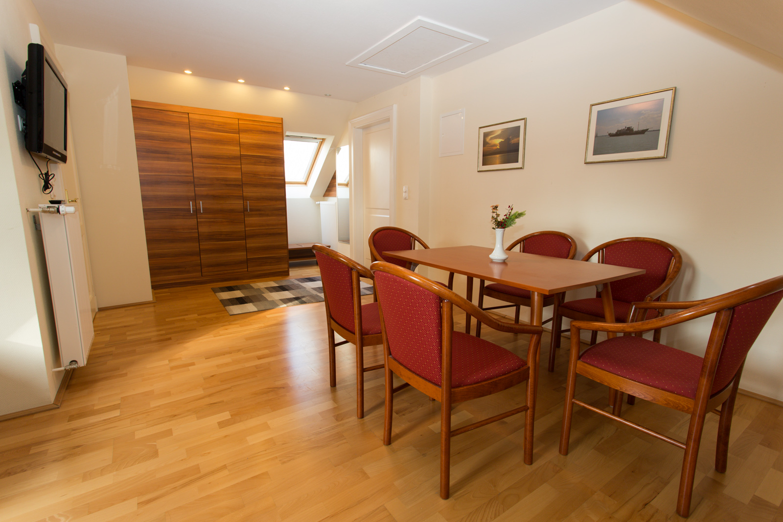 Tágas és kényelmes, két hálószobával rendelkező légkondicionált családi apartmanjaink 4- 5 fő kényelmes elhelyezését biztosítják. Az apartmanjaink különböző méretűek és elrendezésűek, egyes apartmanokhoz konyha is tartozik. Káddal vagy zuhanyzóval felszereltek, hűtő, televízió és WIFI áll vendégeink rendelkezésére.